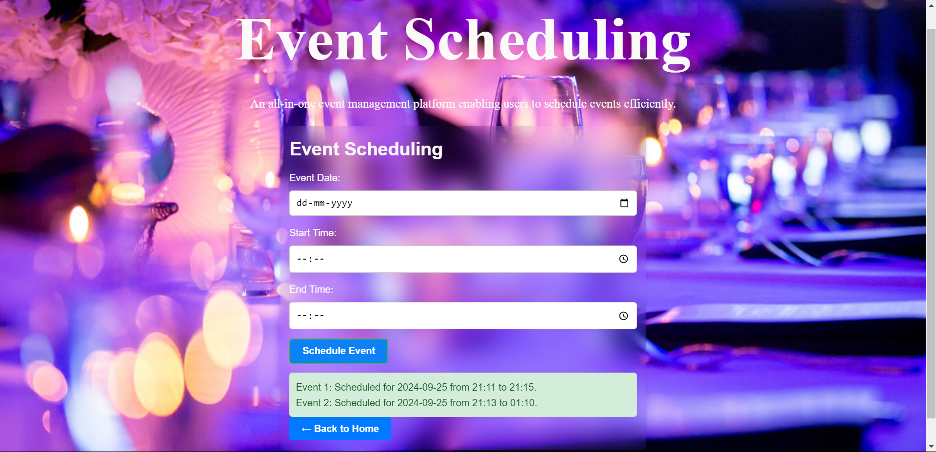 This is a Event sceduling webpage.git:-Link